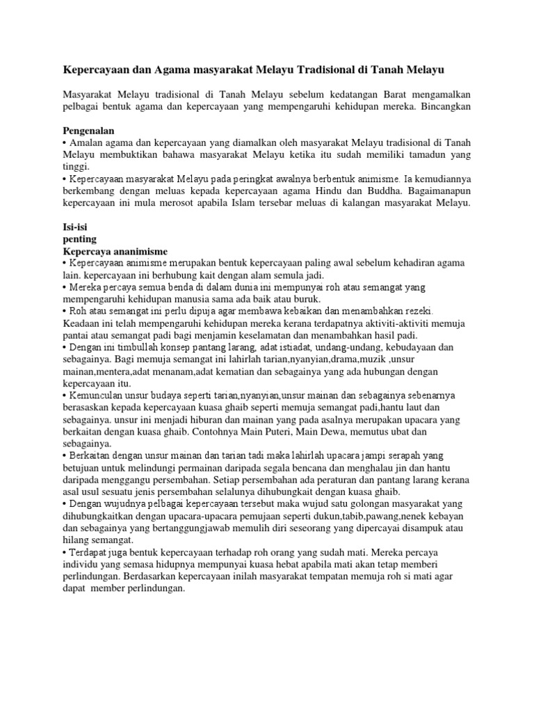 Kepercayaan Dan Agama Masyarakat Melayu Tradisional Di Tanah Melayu Pdf